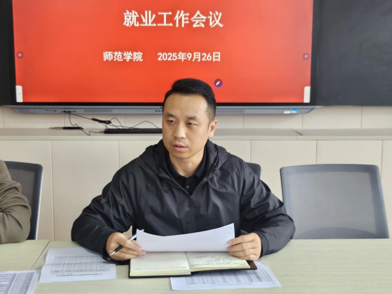 2025年9月26日中午,师范学院组织召开2025届毕业生就业工作专题会议。师范学院党总支书记徐坤、毕业班全体辅导员及学管办工作人员参加会议,会议由学管办副主任宁磊主持。