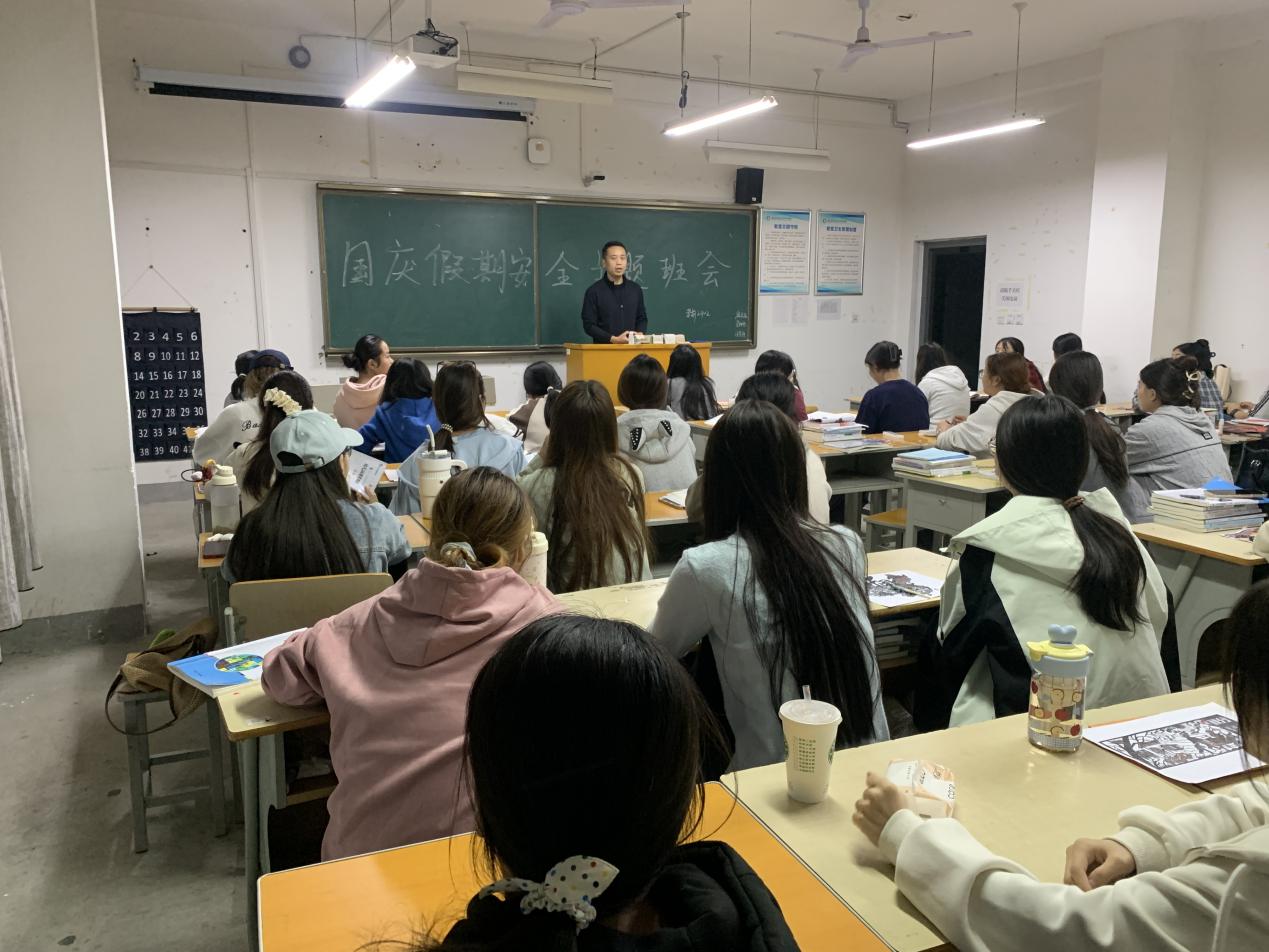 会上,学管办副主任宁磊就双节期间学生安全工作作出安排。他强调,各班主任须提前邀请“四进两联一交友”包联干部,有序组织学生及家长参加学工部召开的安全教育视频会议,并高质量开展班级主题教育班会,按时完成线上安全承诺书的签订工作。安全提醒要围绕消防安全、交通出行、饮食卫生、网络安全及防电信诈骗等内容强化宣传教育,同时全面摸排学生假期去向,细致做好留校学生晚就寝检查及离校学生动态报备管理。
