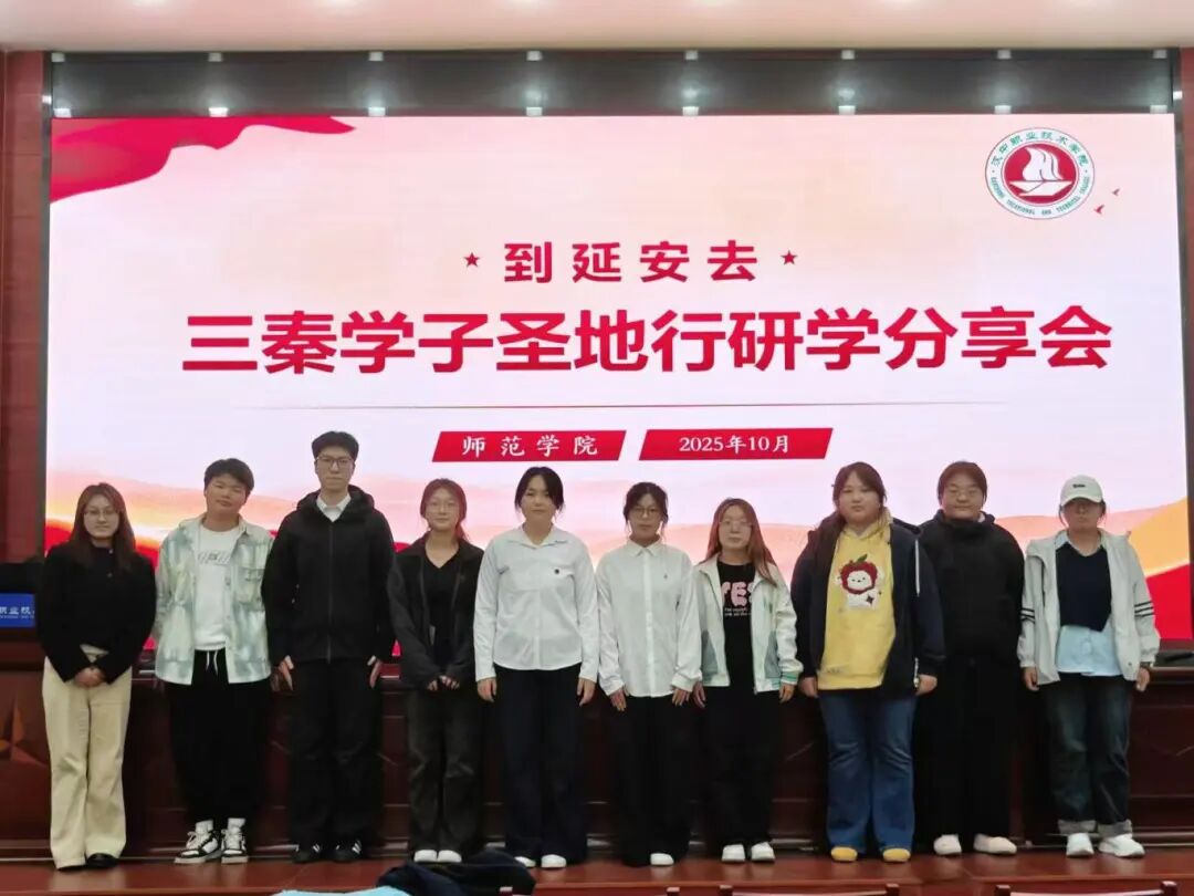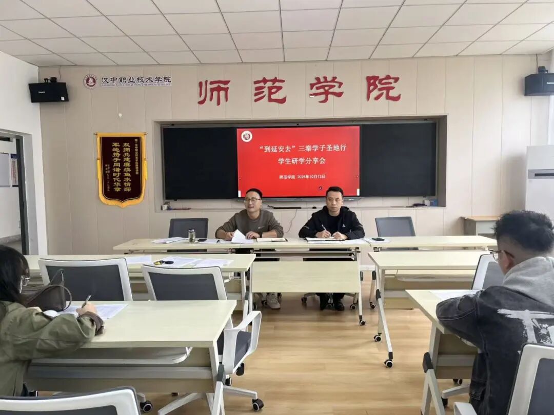 为持续深化研学实践成果,引导青年学子从红色历史中汲取成长力量,将延安精神转化为青春奋斗的强大动力,2025 年 10 月以来,师范学院精心策划并举办“到延安去”·三秦学子圣地行系列研学分享会,通过多场主题分享、多维视角解读,让红色基因在校园落地生根。师范学院党政领导、学管办全体工作人员、专职辅导员、全体班主任、团学干部及各班学生代表参与其中。