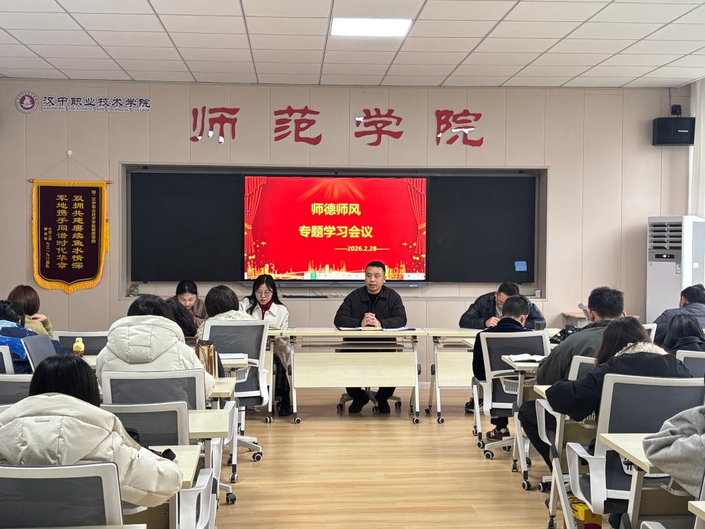 会上,党总支书记徐坤组织全体教职工开展师德师风专题学习,并领学了学院《2026年校园安全稳定工作实施方案》,提出四点要求:一是抓实教育教学,深耕教育主阵地;二是强化专业建设,深化教研教改;三是做实学生管理,守牢安全底线;四是团结协作,形成推动学院高质量发展的强大动力。