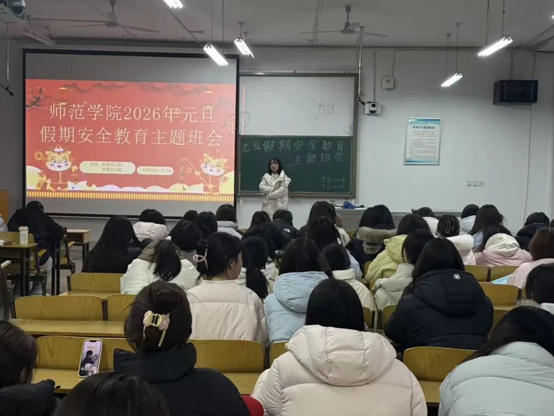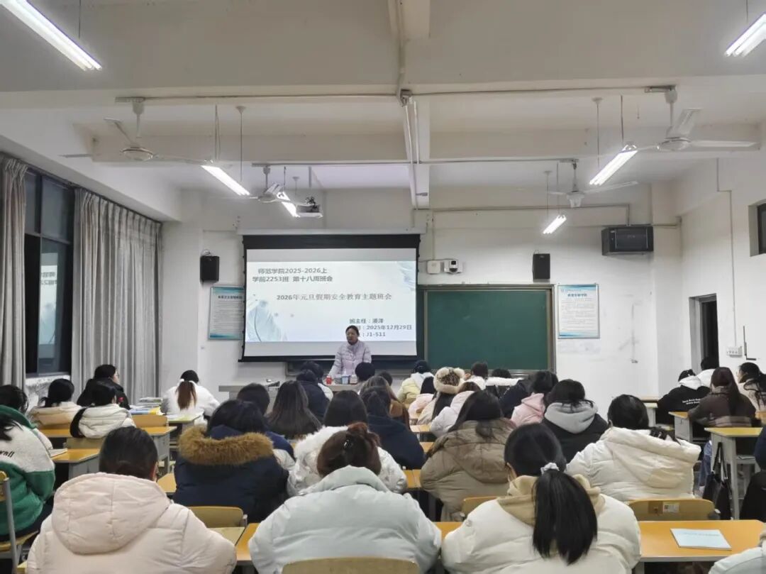 会后,各班班主任围绕假期安全防护核心,开展元旦假期安全教育主题班会,班会涵盖交通、饮食、财产、网络、旅游安全及行程报备、通信畅通等内容,提醒学生元旦假期安全注意事项,切实保障学生安全平稳度过元旦假期。